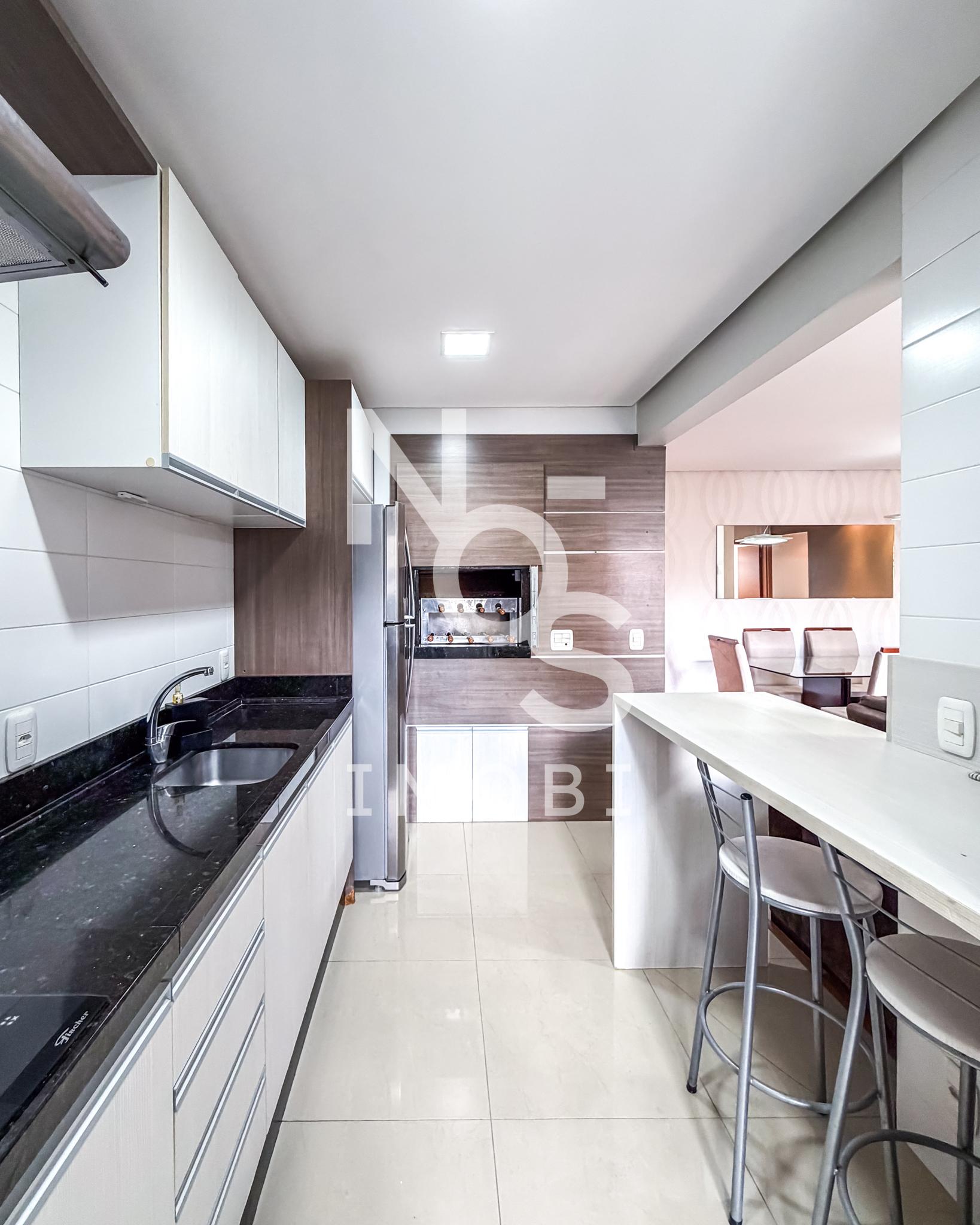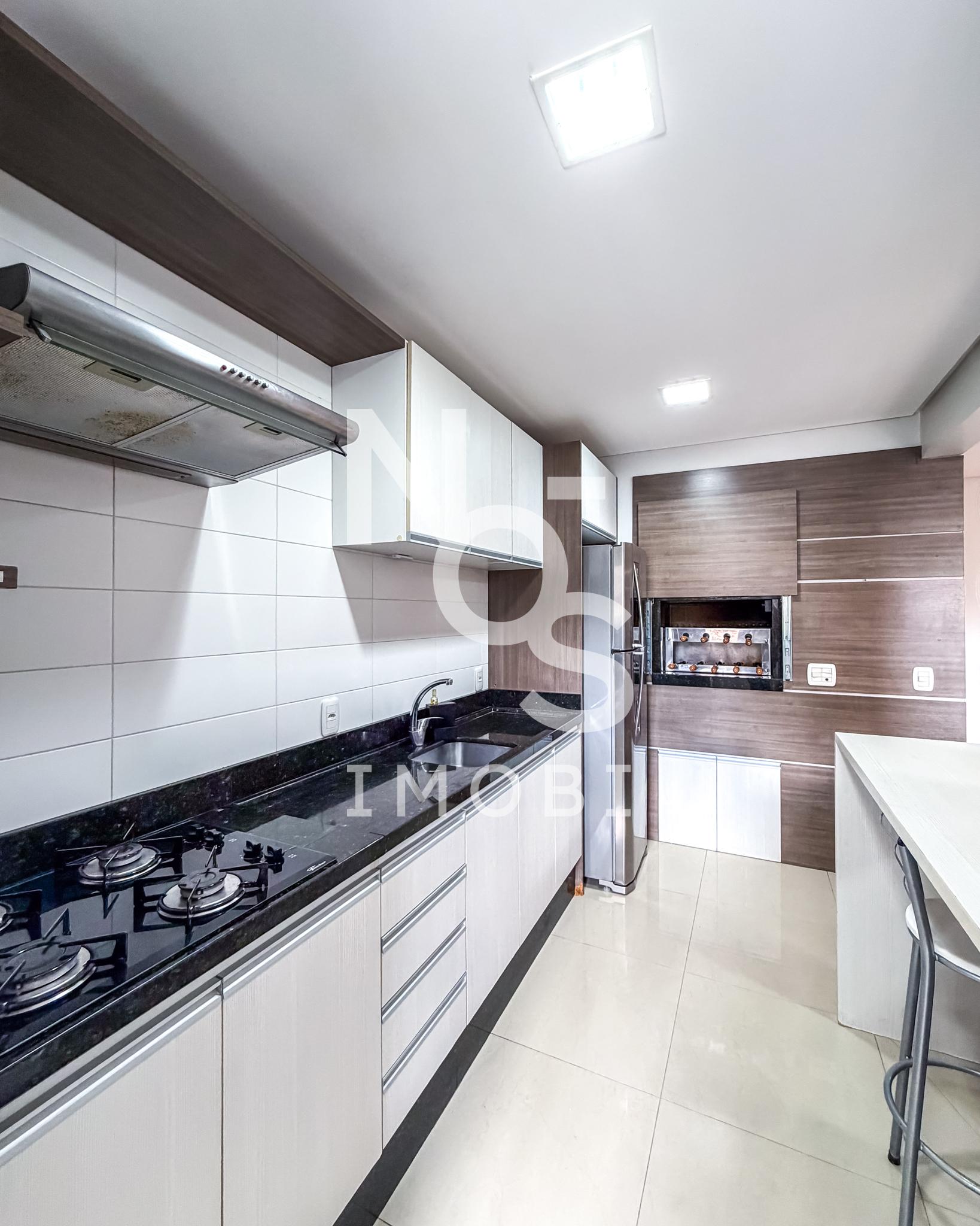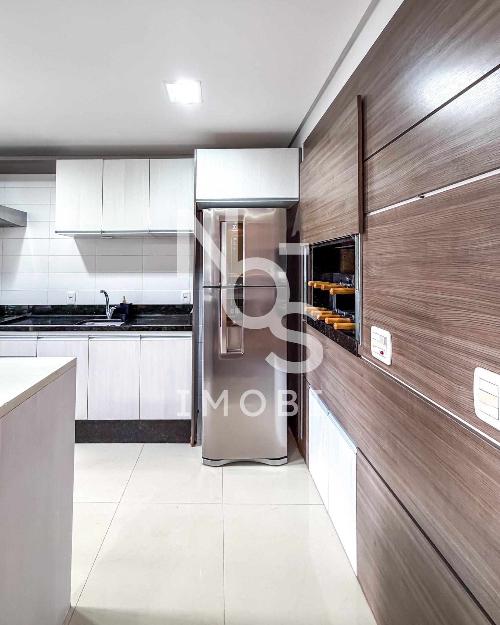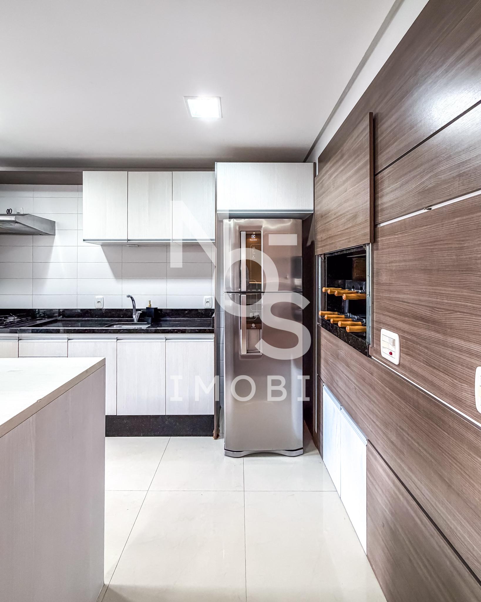 Cozinha com churrasqueira integrada ao living