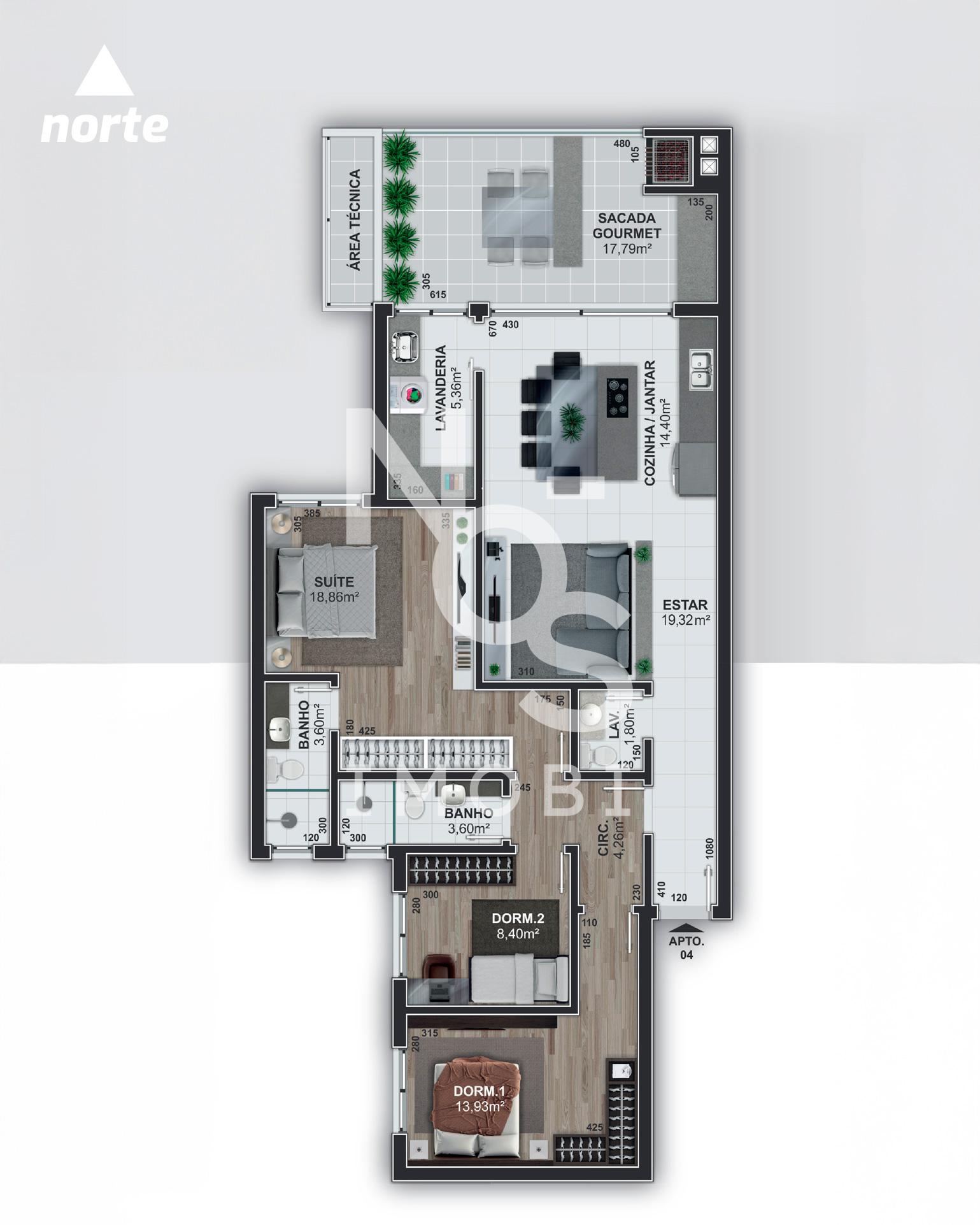 - Sacada Gourmet com espaço para pia e churrasqueira com 1,20 de largura