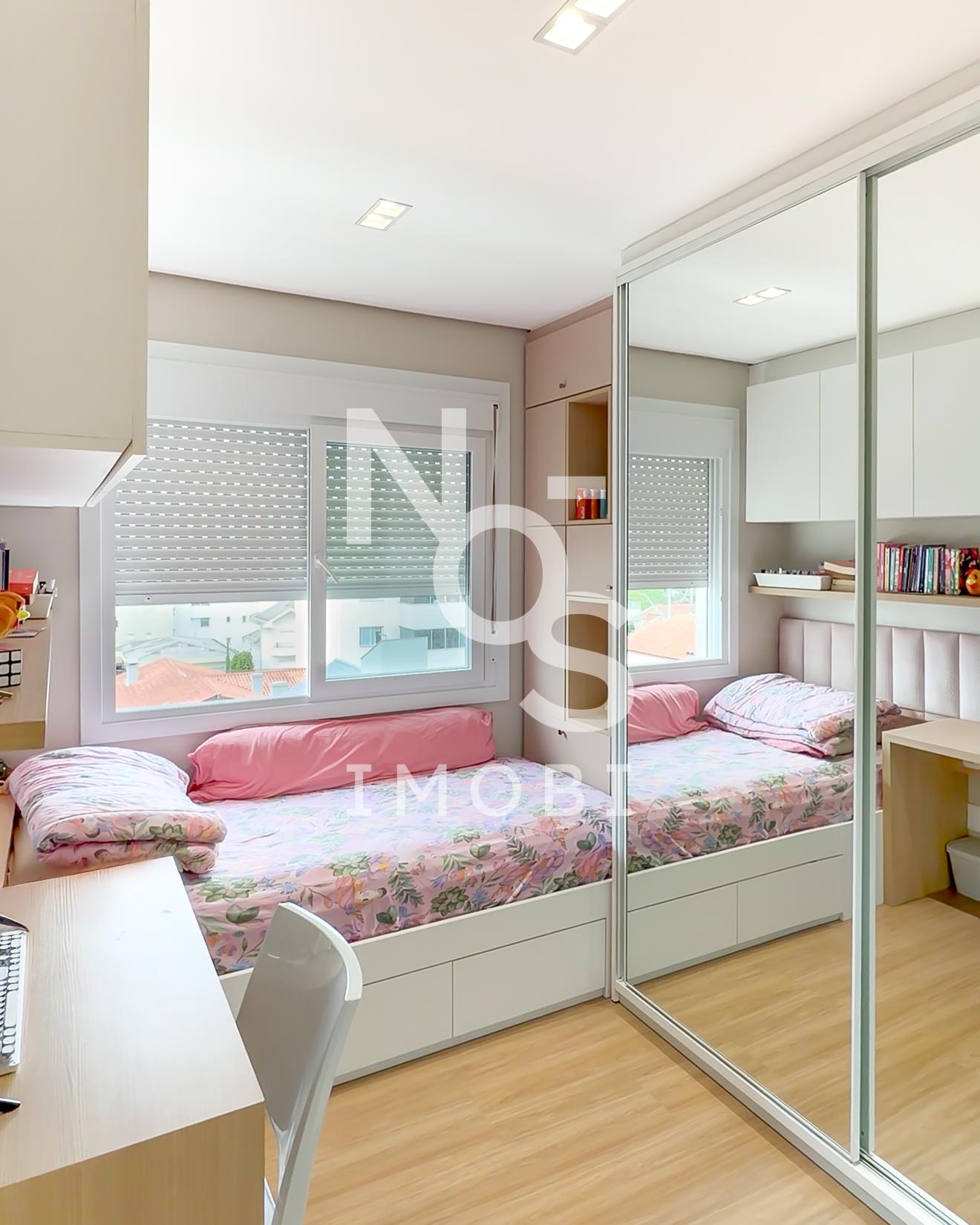 Conta com uma vaga de garagem para dois carros, esquadrias em PVC que proporcionam ótimo isolamento térmico e acústico, além de acabamentos de alto nível em todos os ambientes.