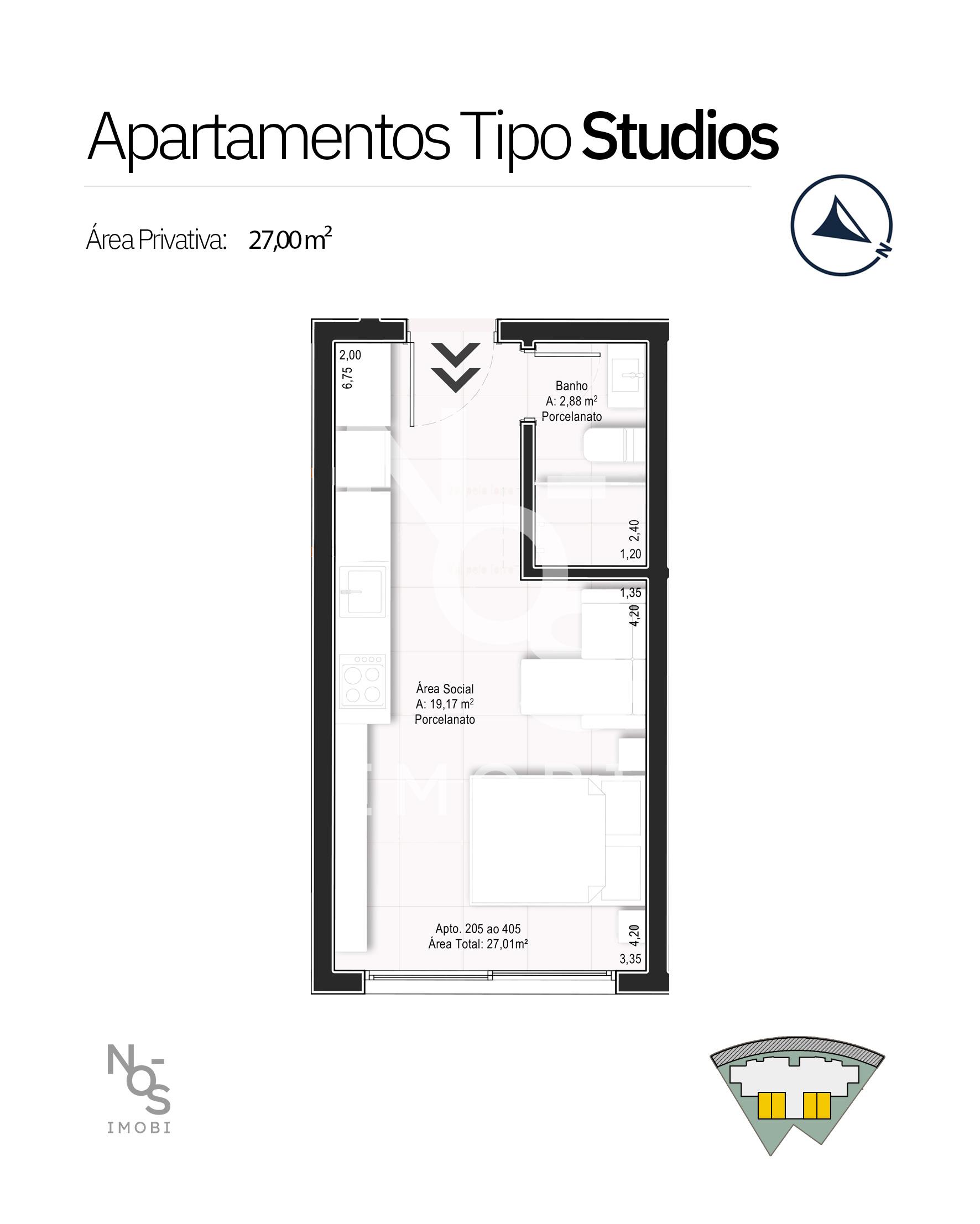 - 12 Studios de 01 dormitório com 1 vaga de garagem cada